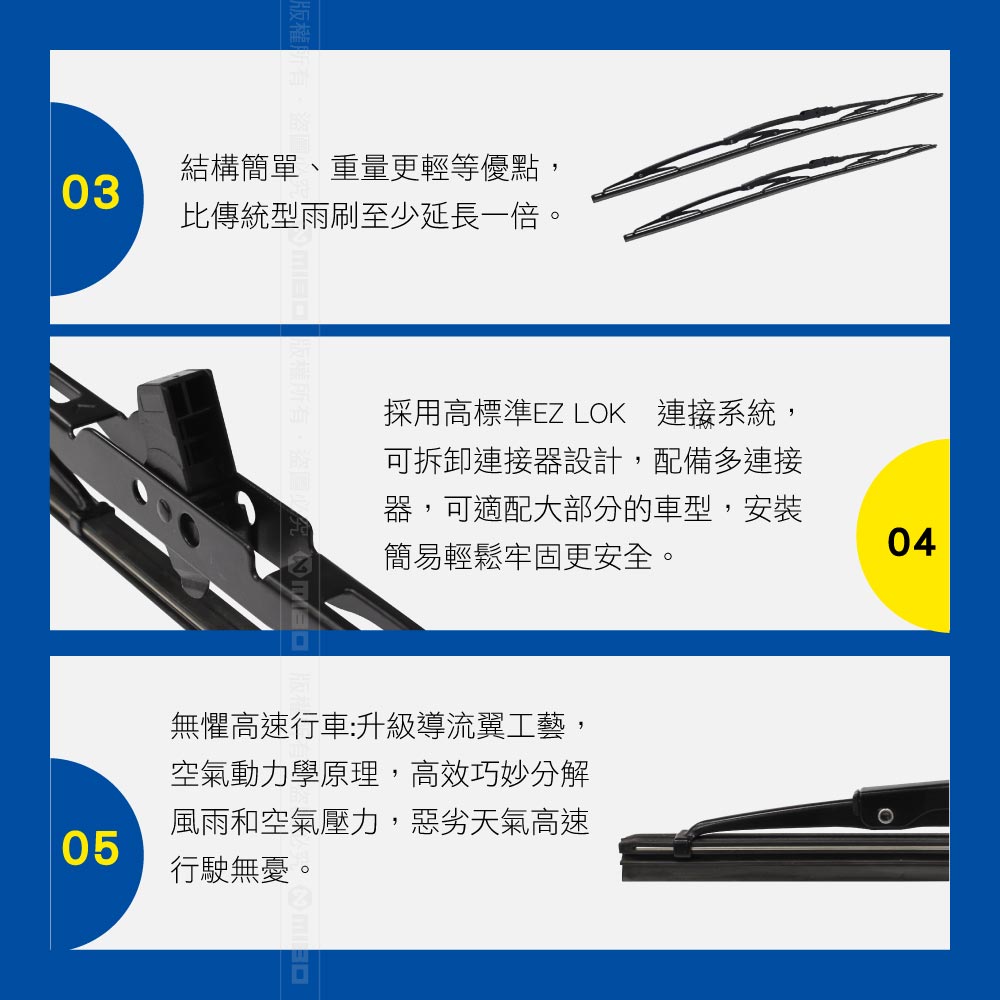 天然膠條披覆特殊材料多層塗裝 鋼板骨架不繡蝕 獨家導流風洞設計 防熱抗凍,耐久滑順好安靜
